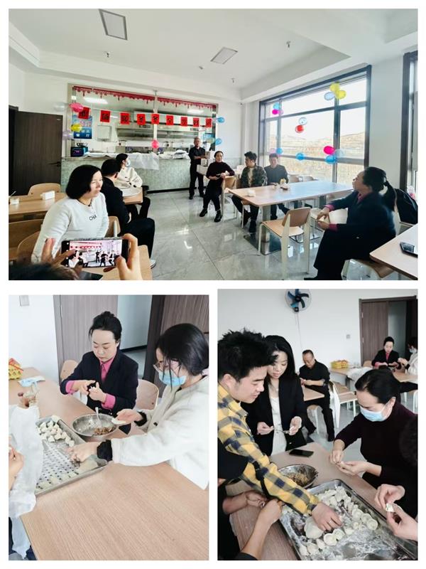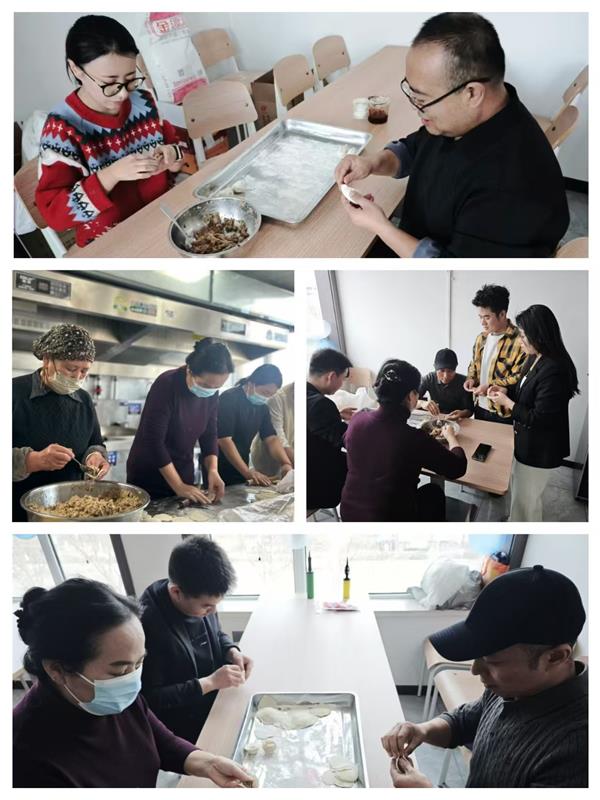 集團(tuán)領(lǐng)導(dǎo)班子成員也一同加入到包餃子的行列中,一邊包餃子一邊與年輕員工分享冬至習(xí)俗:“冬至不端餃子碗,凍掉耳朵沒人管。今天咱們多包點,讓每個人都吃得暖暖和和!”
