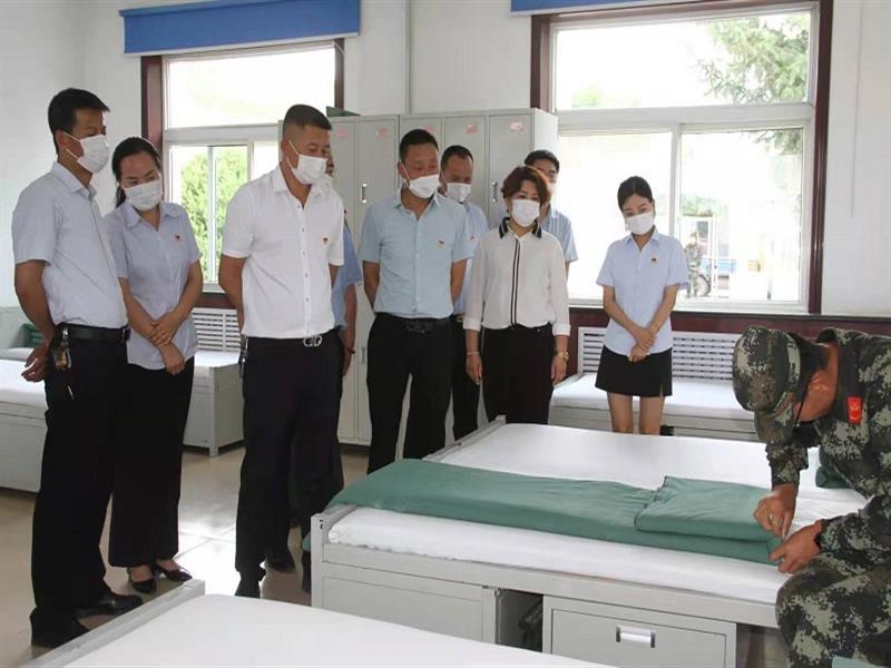 進(jìn)入軍營(yíng),在解說(shuō)員的帶領(lǐng)下,首先,全體黨員參觀了軍營(yíng)文化墻、綠色蔬菜基地、訓(xùn)練項(xiàng)目區(qū)的坑、樁、杠、欄,仿佛眼前每一處都曾滴下他們辛勤的汗水。其次,我們?nèi)w黨員列隊(duì),觀看了他們的軍事格斗技能展演,指導(dǎo)員一聲令下,擒拿格斗、制敵方式所有動(dòng)作嫻熟自如,他們頑強(qiáng)拼搏的精神讓我們每一個(gè)在場(chǎng)的人都為之動(dòng)容。堅(jiān)信只要他們?cè)?,人民就是安全的,他們是黨和人民的驕傲。接著,解說(shuō)員帶領(lǐng)大家來(lái)到生活區(qū),參觀了他們的內(nèi)務(wù)整理,所有物品擺放一致,整齊劃一,床上的被子,就是所謂的“豆腐塊”,堪稱(chēng)一道亮麗的風(fēng)景線。隨后,又參觀了部隊(duì)的榮譽(yù)室,它是這支部隊(duì)記錄榮譽(yù)、傳承軍魂的精神殿堂,學(xué)習(xí)傳統(tǒng)、塑造軍魂、牢記使命,墻上懸掛的每一副圖片、柜子上陳列的每一件物品,讓全體參觀人員感慨萬(wàn)千,對(duì)他們的無(wú)私奉獻(xiàn)表示崇高的敬意。