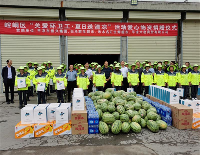 為了積極響應區(qū)委、區(qū)政府發(fā)出的以“清涼度盛夏,安康伴我行”為主題的“夏日送清涼·真情暖人心”活動的號召,在區(qū)工商聯(lián)的組織下,平涼市振興集團于2020年7月18日下午,參加了在崆峒區(qū)環(huán)衛(wèi)處院內舉行的“夏日送清涼·真情暖人心”活動物資捐贈儀式,集團副董事長鄭龍參加了本次活動,并在活動儀式上代表捐贈企業(yè)的所有同仁發(fā)表了講話。